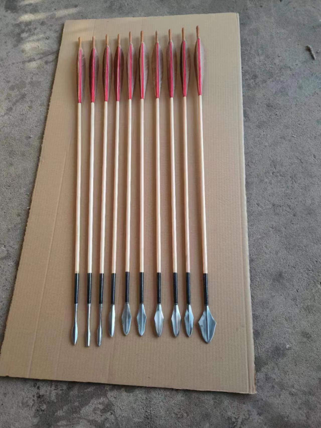 “According to the standards of our Dynasty, the arrows of military officers and soldiers shall be made from 3-chi (approx. 90cm or 96cm) long Hua Mu (桦木 birch wood)or Liu Mu (柳木 willow wood) shafts with 3-cun (3cm or 3.2cm) long arrow heads. The tips of the shaft shall be decorated with birch barks and fletched with the feather of Guan Bird (鹳, Stork?). The name and rank of the soldier and officer is to be inscripted on the space between the fletchings.”