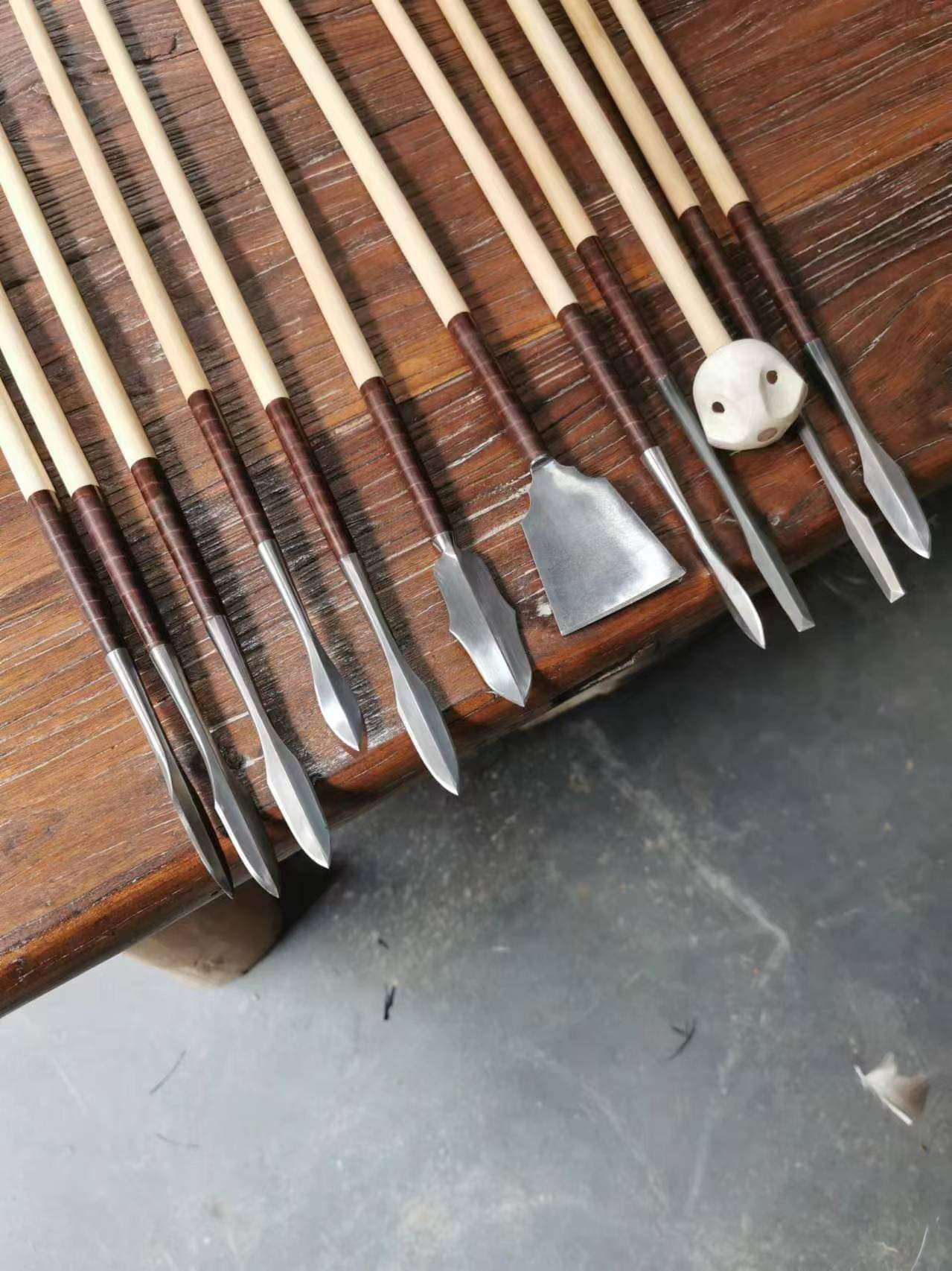 The Manchu arrows have some unique features that make it quite recognizable when compared to arrows from other cultures. Often time, some archers would joking say that the Manchu arrows are not simple arrows but small spears. Here are examples of these trademark features: